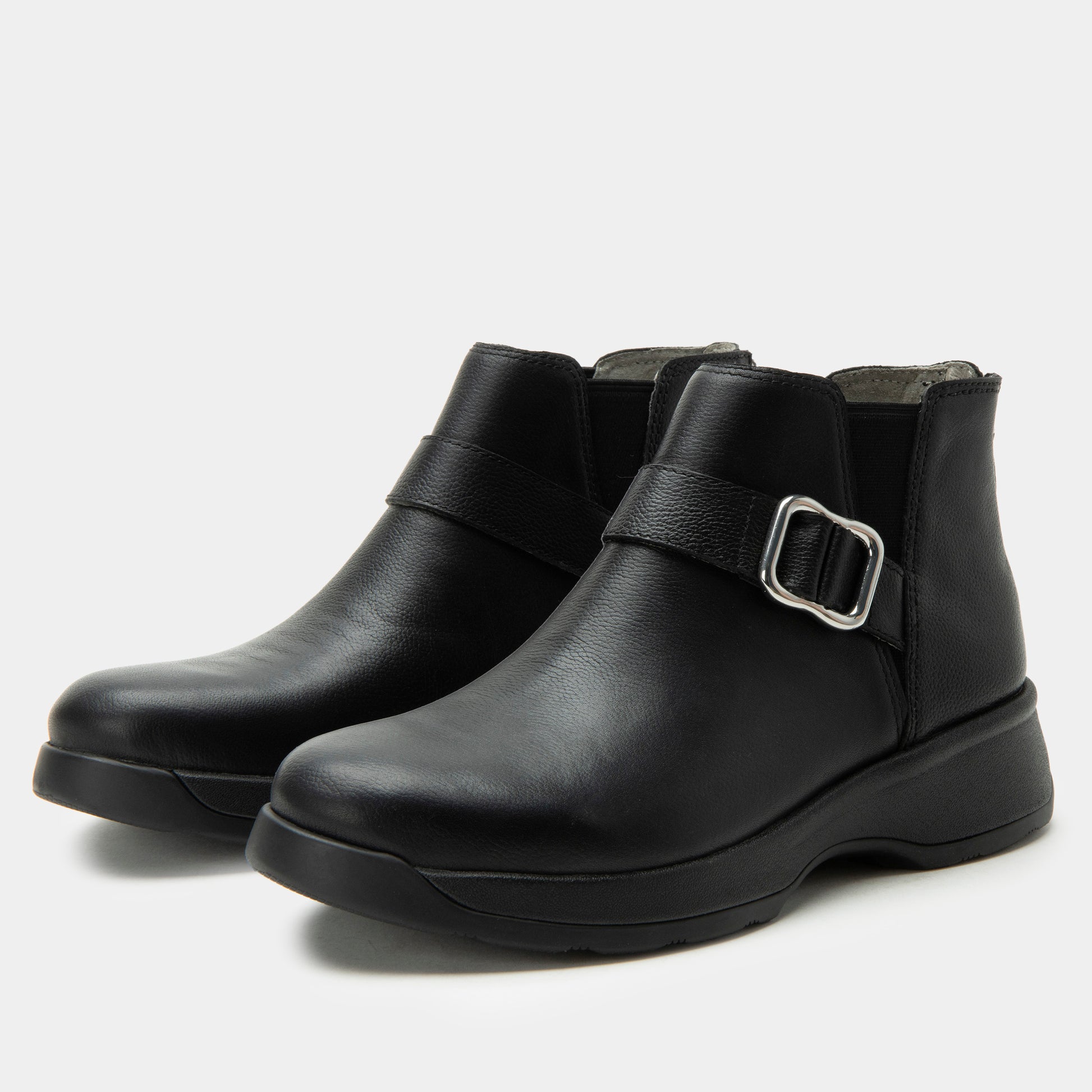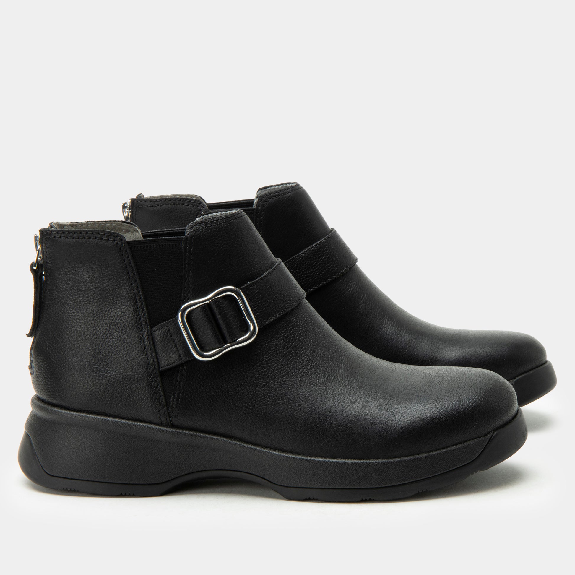 Sleek and versatile, the Jerica in Black Bird is the ankle boot that pairs effortlessly with everything from jeans to dresses. Crafted from smooth black leather, its tailored silhouette makes it an easy choice for both casual days and evenings out. The silver-tone buckle adds a polished touch, while the built-in Alegria footbed delivers supportive comfort for all-day wear.