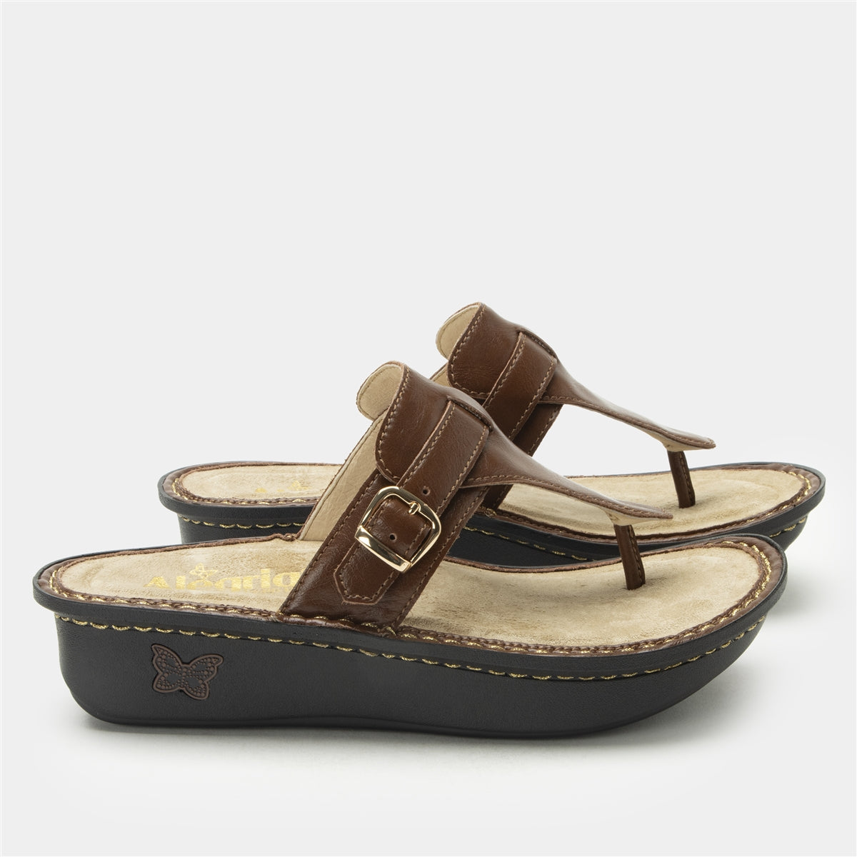 Combine classic elegance with podiatrist-approved comfort in the Alegria Kennedi thong sandal in Marrone. Featuring a rich brown leather upper, this sandal adds timeless sophistication to any wardrobe. With the APMA Seal of Acceptance, the Kennedi ensures trusted foot health benefits for all-day wear. Alegria’s signature cushioned footbed offers exceptional support and pressure relief, while the lightweight, slip-resistant outsole enhances stability. The adjustable hook-and-loop closure guarantees a secure and customized fit, making the Kennedi Marrone perfect for casual outings or stylish occasions.Every Alegria Kennedi thong sandal comforts your foot with features like: