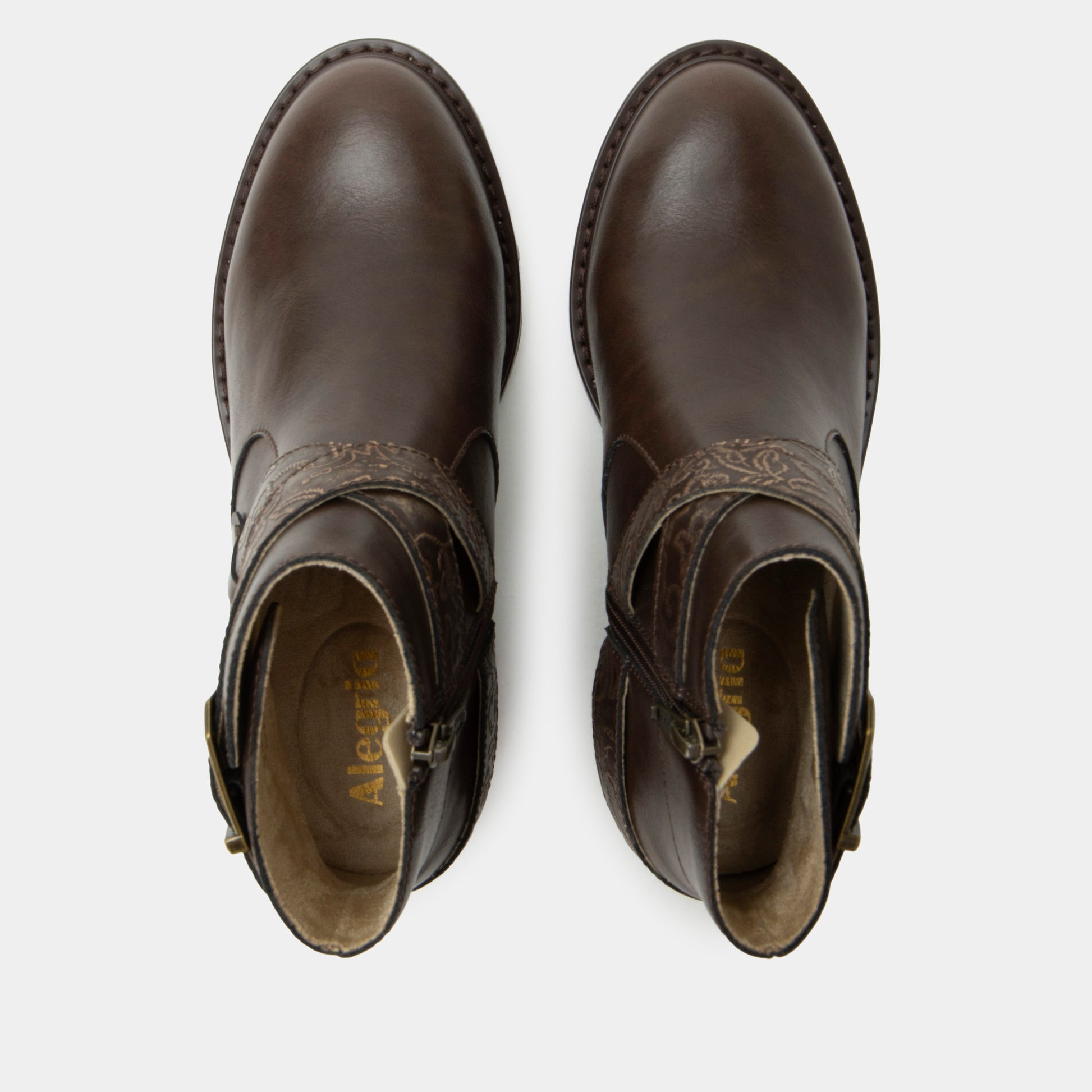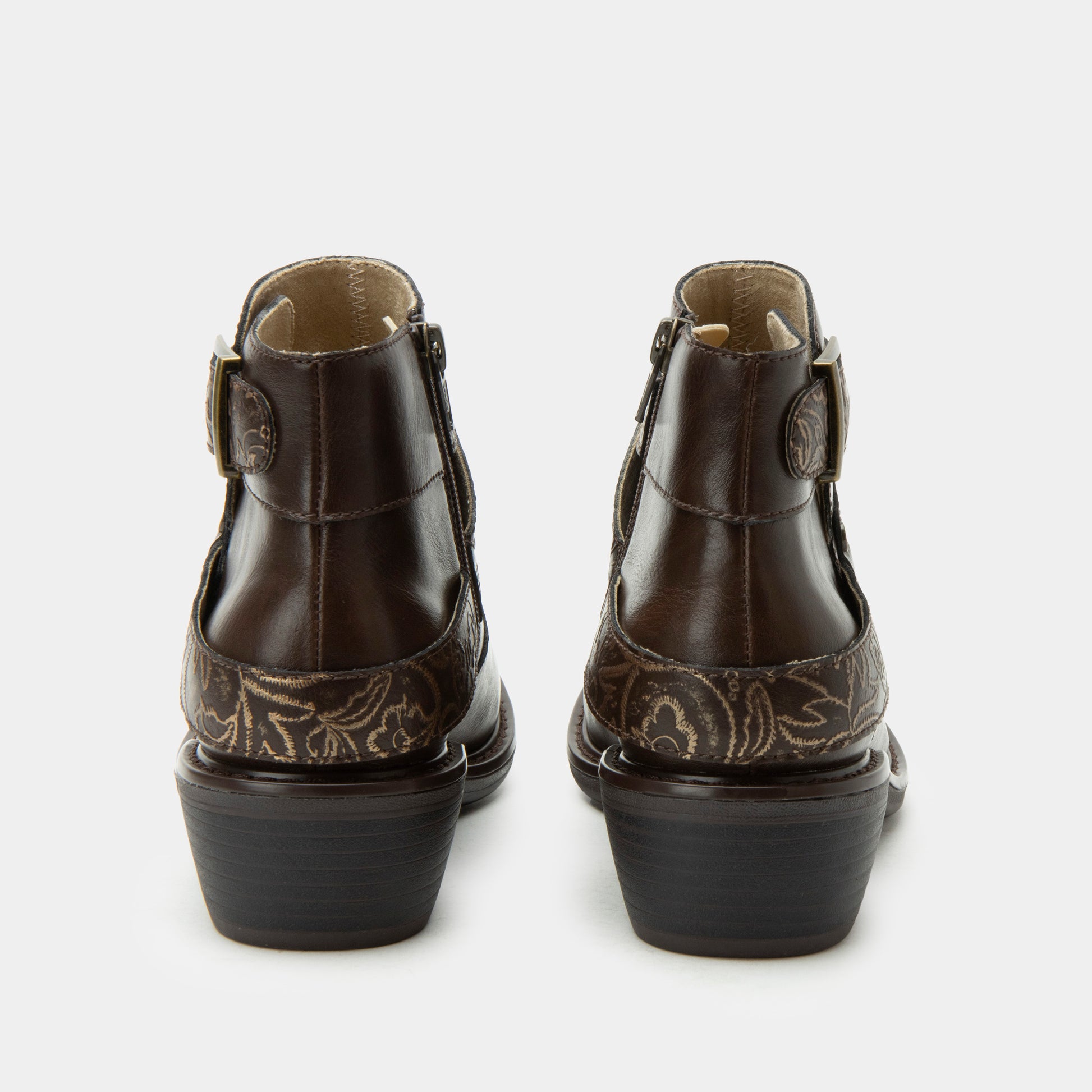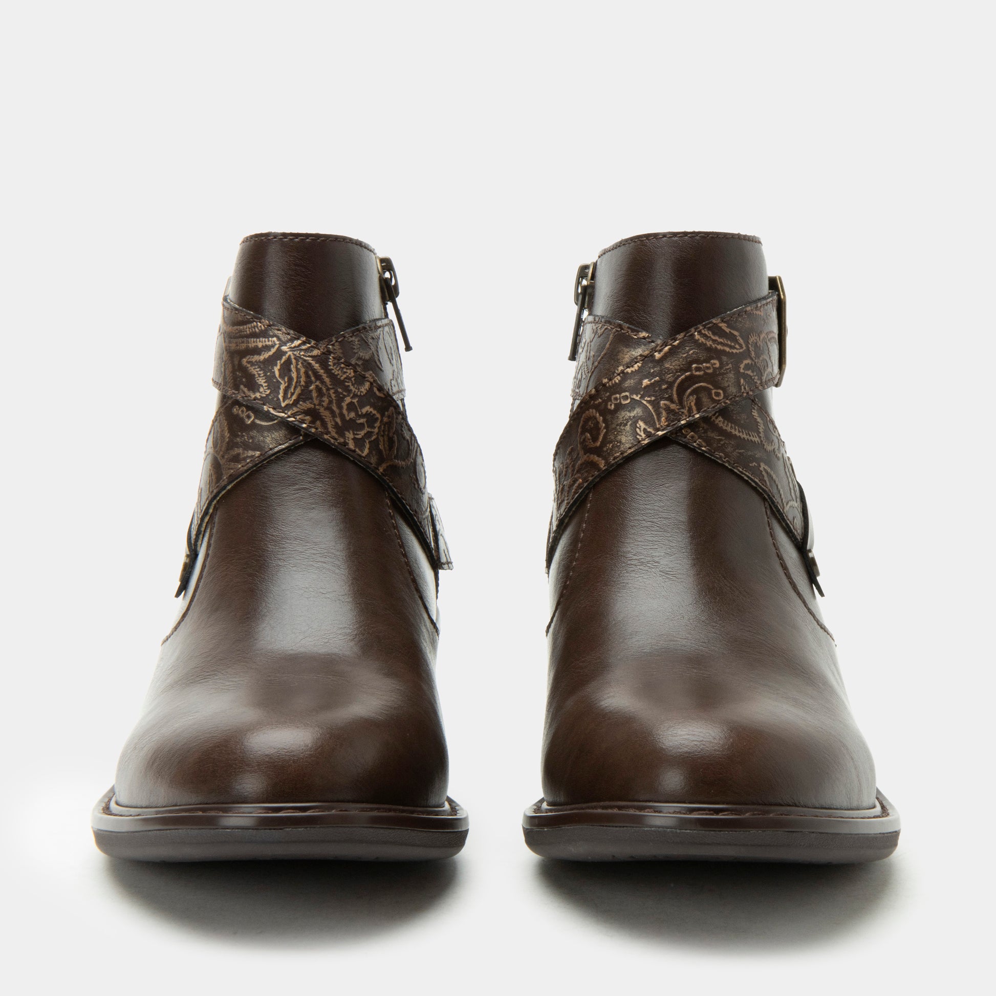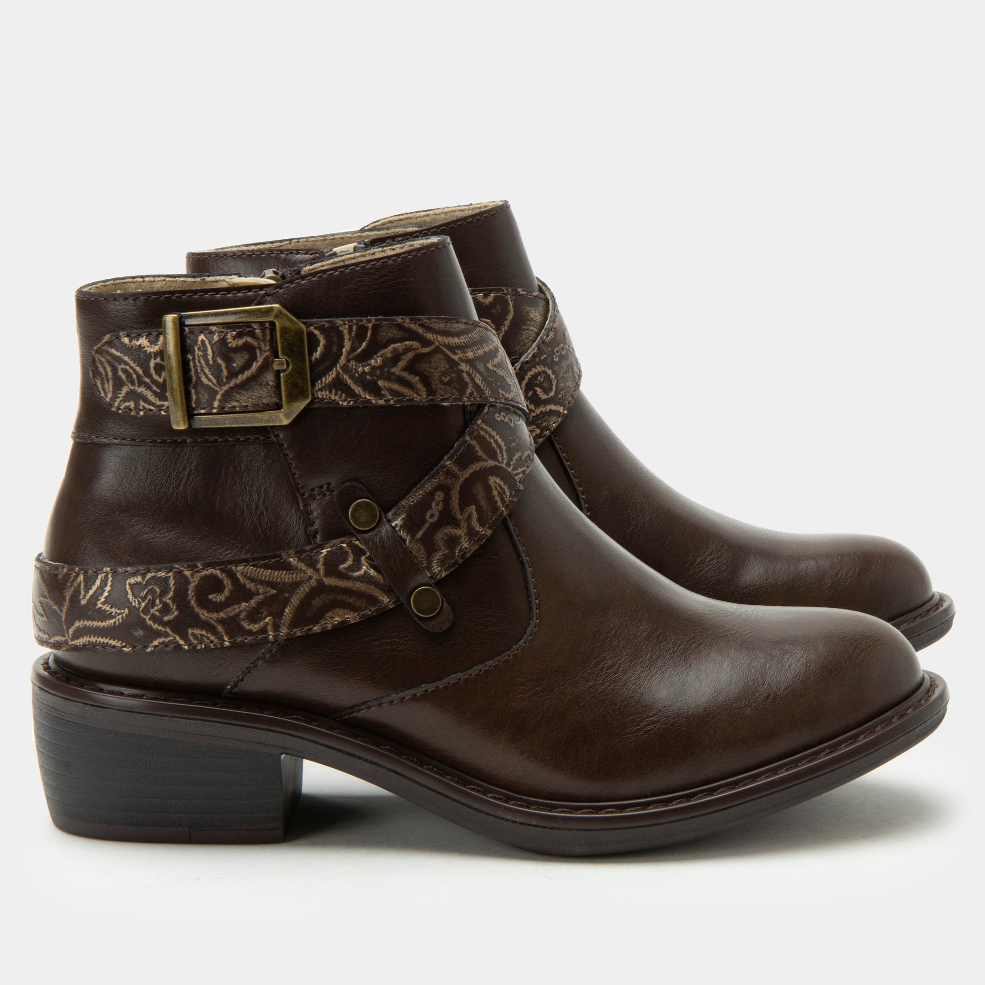 Step into rustic elegance with the Alegria Millie in Embroider Me Brown. This ankle boot blends classic western charm with Alegria’s signature comfort, making it an essential style for every wardrobe. Crafted from smooth brown leather, it features embroidered strap accents and an antique brass buckle that add texture and refinement to the versatile design.