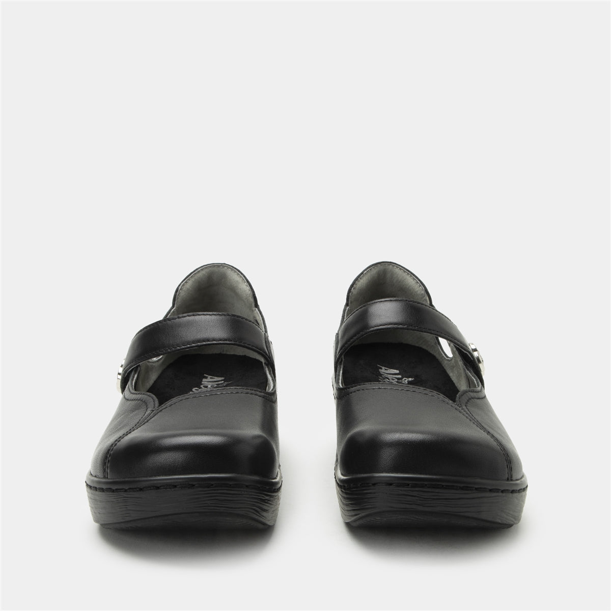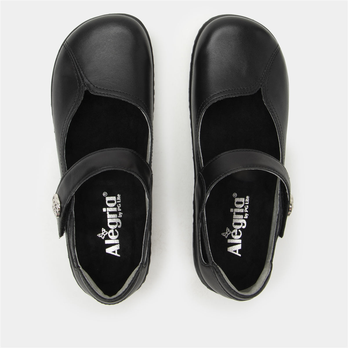 Introducing the Alegria Onika in Black, a contemporary Mary Jane that seamlessly blends comfort with understated style. This version features a smooth leather upper with a convenient hook-and-loop strap for easy adjustments and a secure fit. Inside, a padded collar and removable microsuede footbed contour to your feet, offering exceptional comfort. The patented Alegria footbed provides superb arch support, while the chic wood-look bottom adds a subtle touch of elegance. The Onika in Black is perfect for those seeking a versatile and comfortable shoe with a rich tone.Additional Benefits: