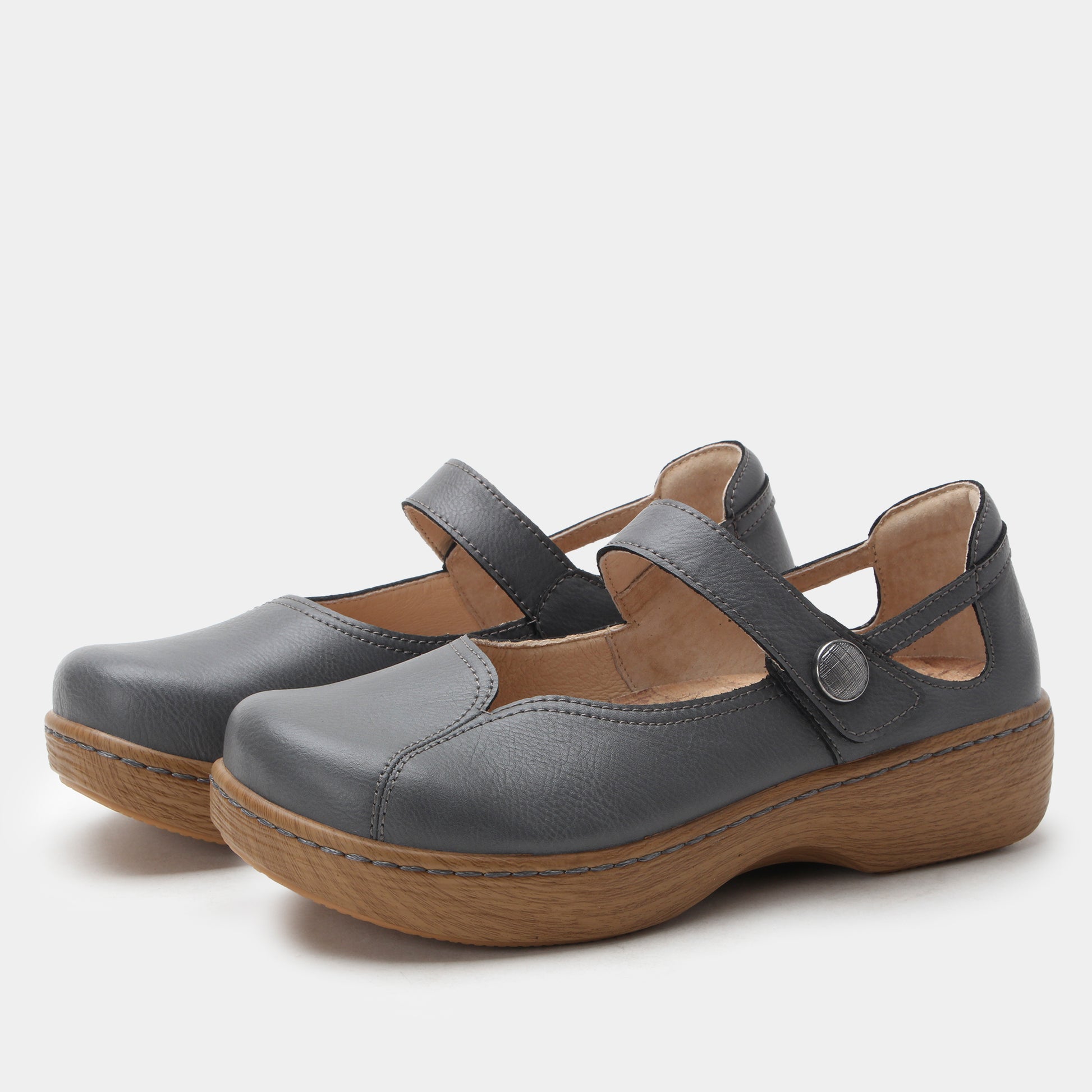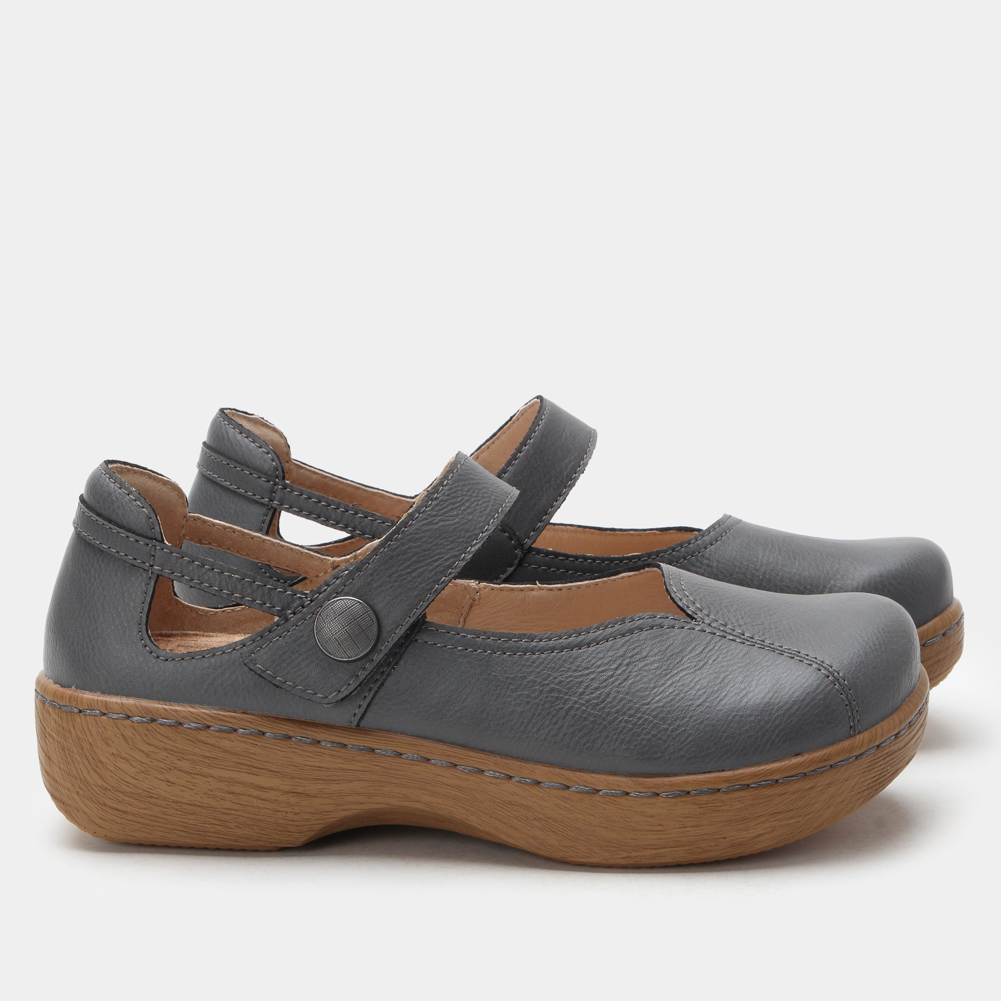 Ground your look in timeless comfort with the Alegria Onika in Dusty. This Mary Jane features a smooth leather upper with an earthy tone that pairs effortlessly with both casual and professional wardrobes. A classic hook-and-loop strap with an ornate bronze button ensures easy adjustability, while the padded collar and removable footbed offer lasting support. The patented Alegria footbed works with the wood-look rocker outsole to promote healthy alignment and relieve pressure on joints. Whether you're headed to work or enjoying the weekend, the Onika in Dusty is the perfect blend of comfort and style.