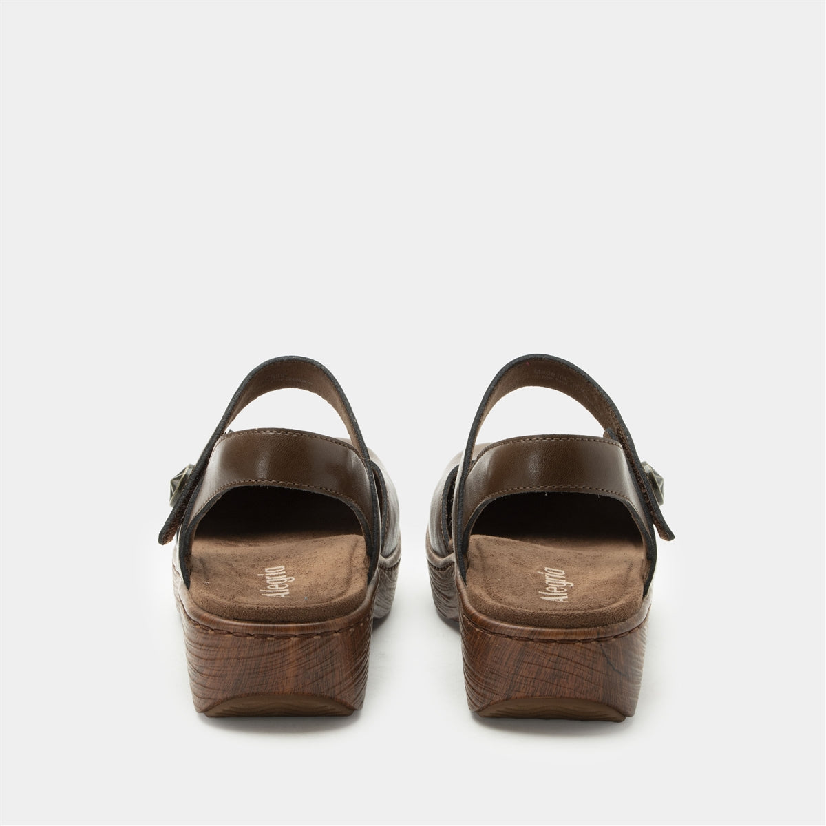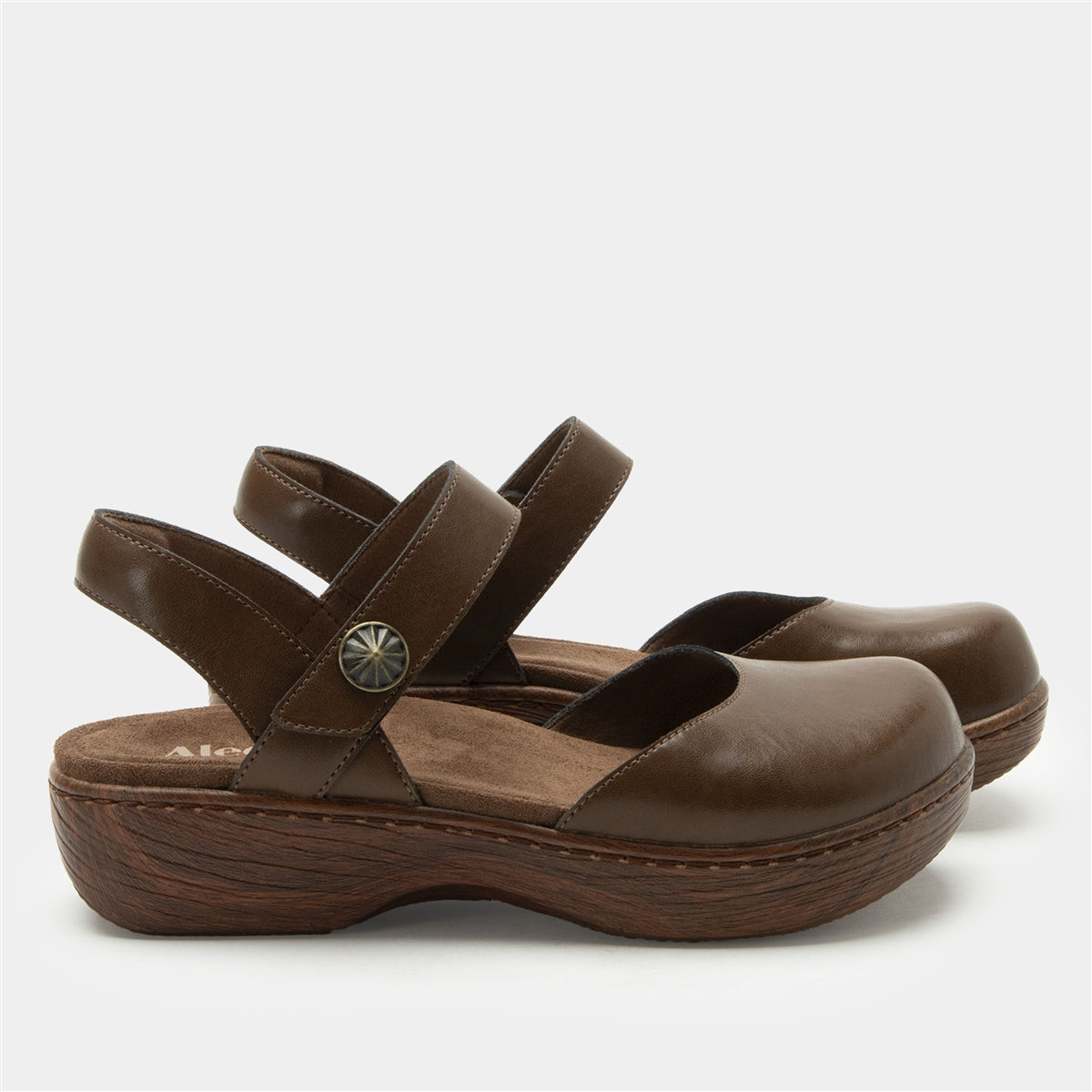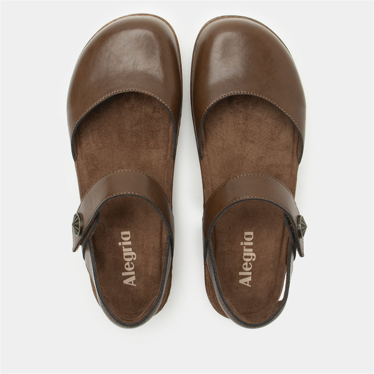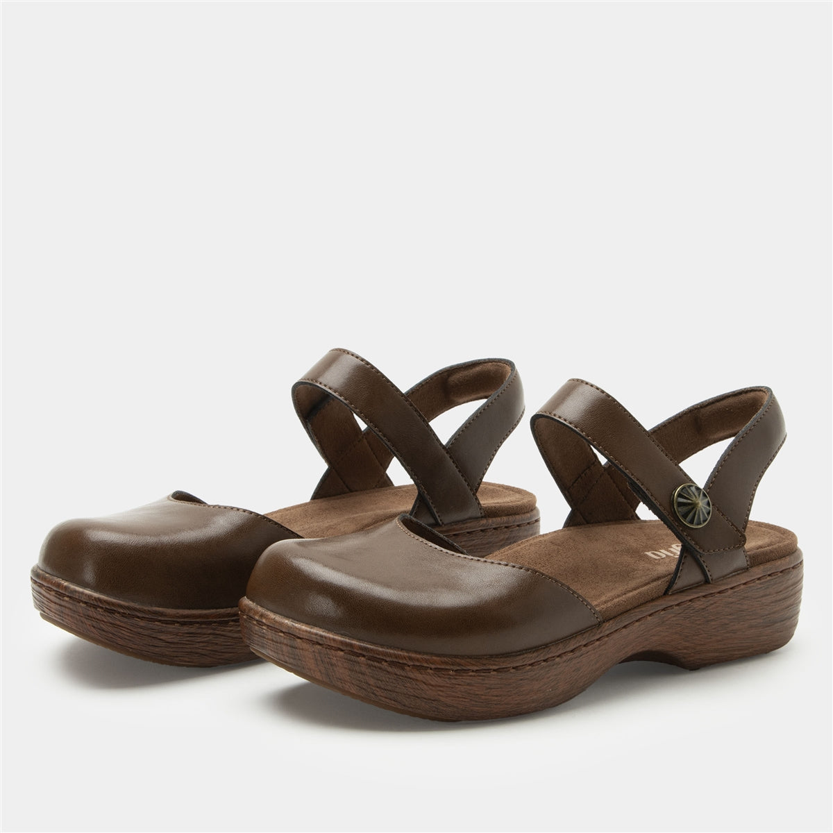 Introducing the Alegria Opal in the rich Walnut color, a sophisticated slingback Mary Jane that perfectly balances style and comfort. This version features a smooth, solid brown leather upper in a warm, earthy shade, paired with an adjustable hook-and-loop strap for a secure and tailored fit. The open-back design adds a touch of elegance while enhancing breathability. Inside, the cushioned microsuede footbed and padded collar offer a personalized fit and all-day comfort. The patented Alegria footbed delivers exceptional arch support, complemented by a sleek and versatile sole. The Opal in Walnut is an ideal choice for those who appreciate timeless, refined footwear with all-season appeal.Additional Benefits: