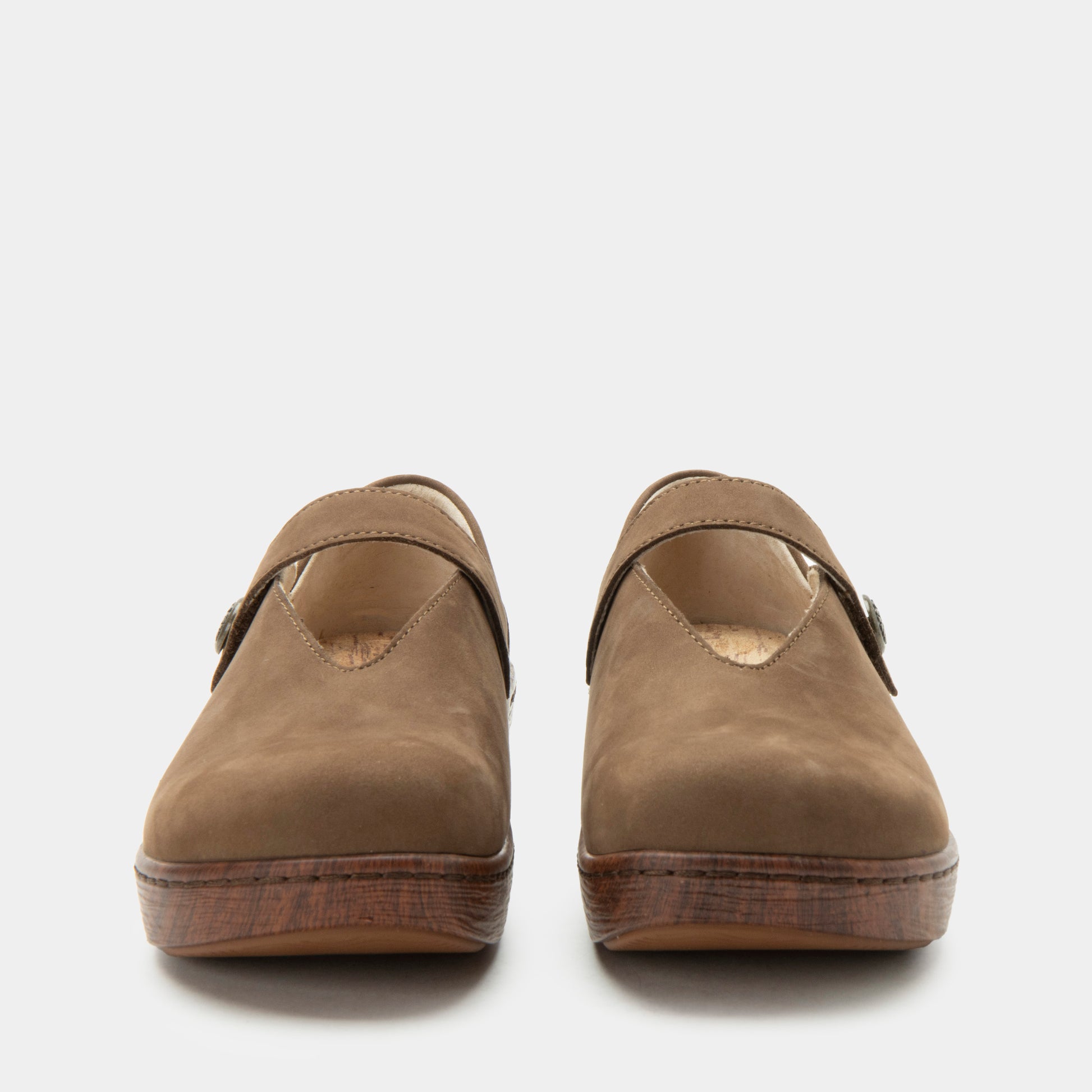 Introducing the Alegria Ophelia in Fawn, a warm, earthy take on the timeless Mary Jane that blends casual elegance with superior comfort. This shoe features a soft nubuck leather upper in a natural fawn tone, adding versatile style that pairs effortlessly with any outfit. The adjustable hook-and-loop strap with decorative button detail ensures a personalized fit, while the padded collar and removable microsuede footbed provide exceptional comfort. Built with the patented Alegria footbed, it offers outstanding arch support for all-day wear. Finished with a wood-look rocker outsole, the Ophelia in Fawn delivers style, stability, and comfort in one beautifully simple design.Additional Benefits: