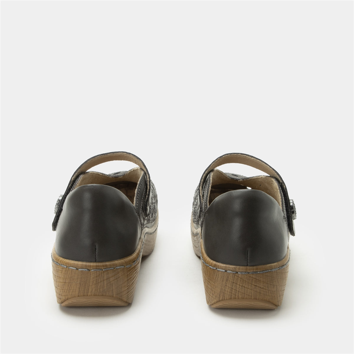 Features: Alegria Wood Look Rocker Outsole