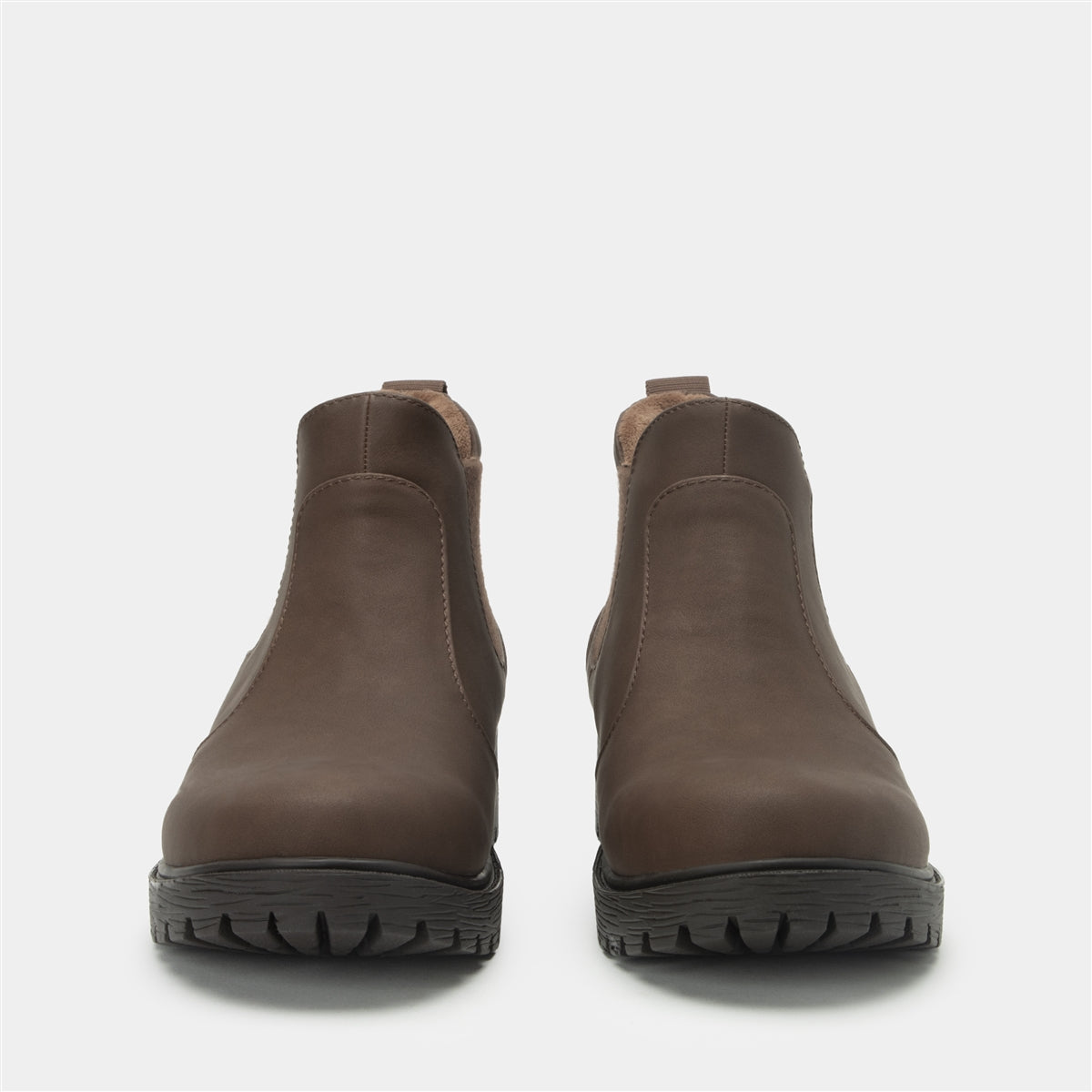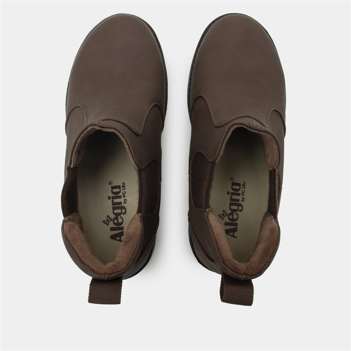 Step out in style with the waterproof Alegria Rowen in Relaxed Cocoa. This rich brown Chelsea boot combines fashion and functionality, making it the perfect companion for cooler weather. Designed with a vegan leather upper and warm lining, it keeps your feet cozy and dry all day long. The double elastic gores and back pull tab ensure easy on-and-off wear, while the slip-resistant Luxe Lug outsole provides stability on any surface.