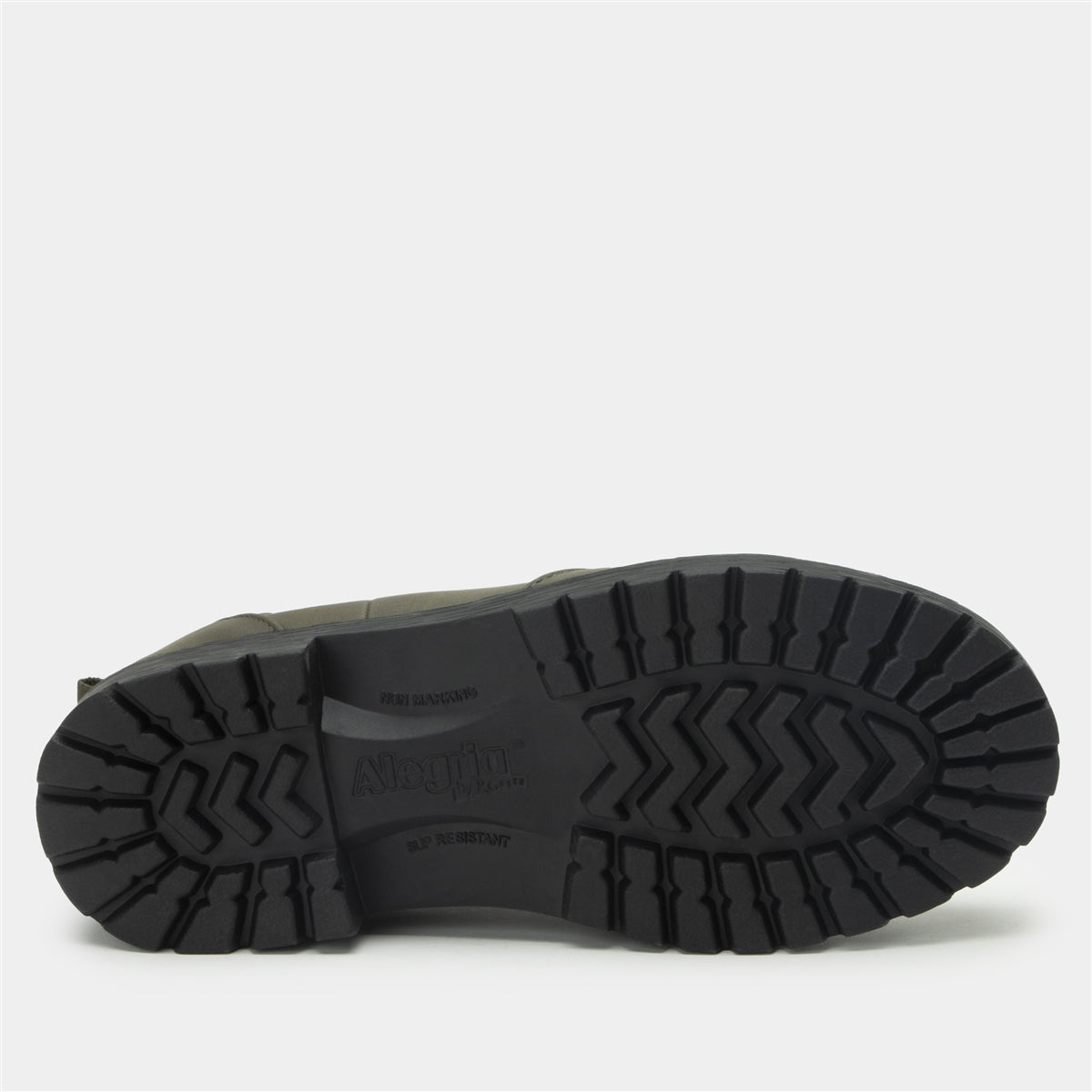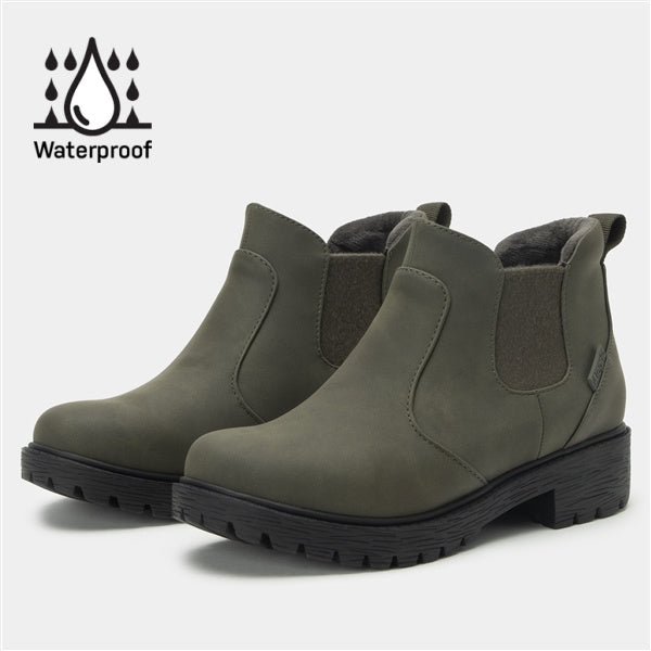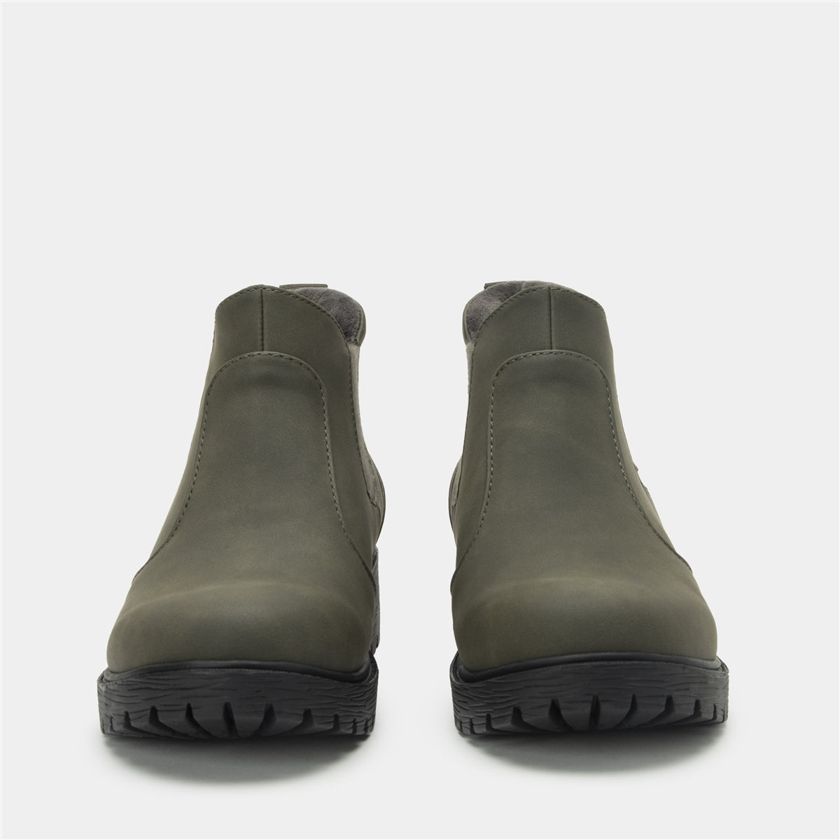 Embrace earthy tones with the waterproof Alegria Rowen in Relaxed Moss. This versatile green Chelsea boot is perfect for adding a natural touch to your wardrobe while providing unmatched comfort. Crafted with a vegan leather upper and a warm lining, it keeps your feet cozy and dry in any weather. The double elastic gores and back pull tab make for easy wear, while the slip-resistant Luxe Lug outsole ensures secure footing wherever you go.